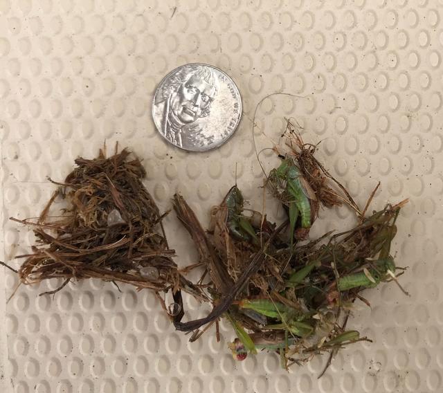 Here’s the debris I pulled out using a pair of needle nose pliers and a hook tip pick. I put a nickel in the photo for scale: