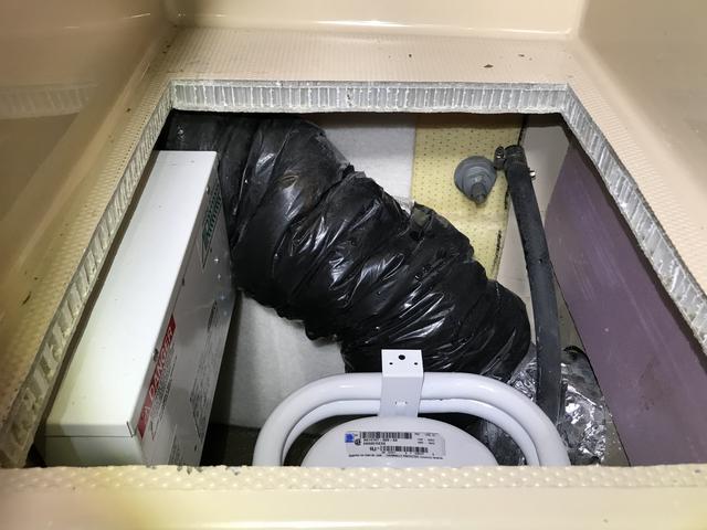 Here’s a photo of the hatch opened and the A/C discharge hose removed: