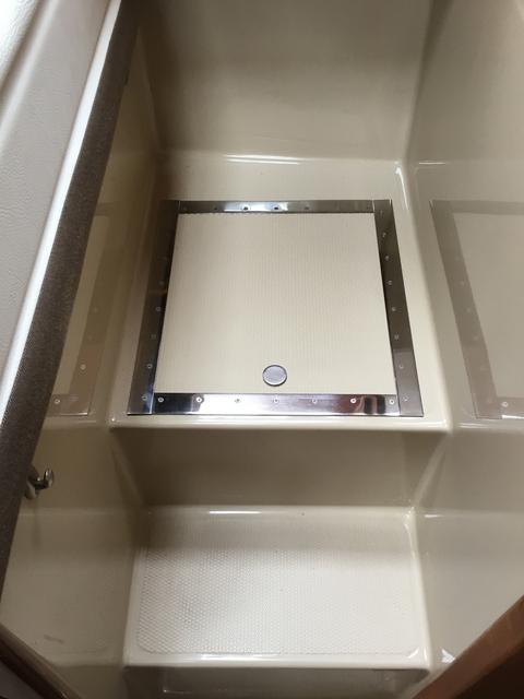 Last year, I had a hatch cut in the footwell of the port side seat to facilitate quick and easy access to the air conditioning condenser unit and water discharge thru-hull in case service was required. Today, that modification paid for itself. In about 10 minutes, I was able to pull the hatch (takes about five seconds), remove the A/C water discharge hose from the thru-hull fitting and clear out an insect nest from down inside the hose. After I cleared the nest, and with the discharge hose still off, I briefly started and stopped the A/C twice to flush out any remaining debris. I put a container down inside the hatch to capture the discharged water so I could inspect it and assure all the nest material was out.