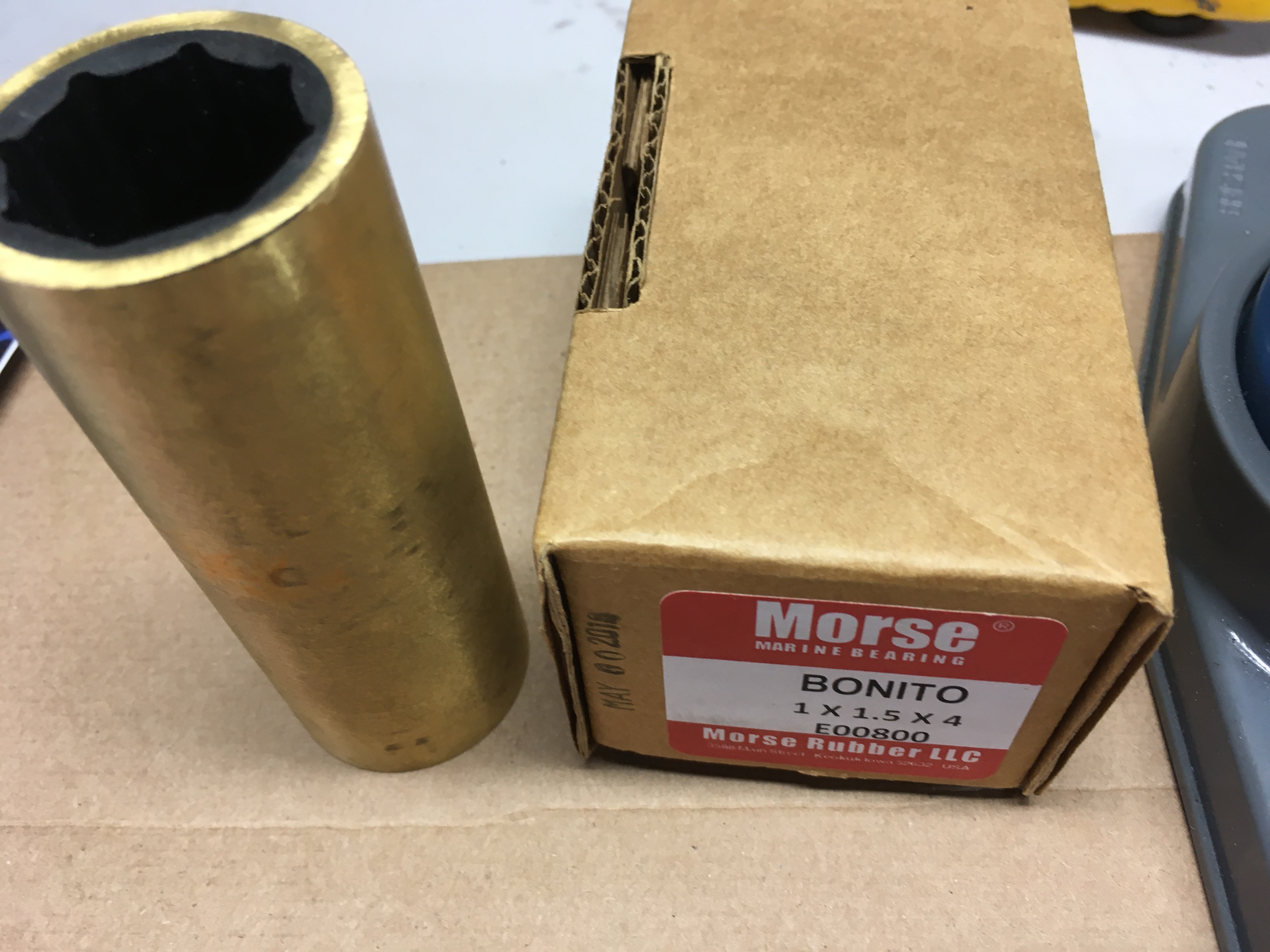 The bearing came out and went back in fairly easily. Getting the coupling off of the shaft was the hardest part for me as there was not a lot of room to work in. I made up pullers for the prop, coupling and cutlass bearing so maybe having proper pullers would have made it easier but the bearing itself came pretty easy. The pics show the tool I made to pull it out. You can tap the new one in or use a threaded rod to pulll it in.
