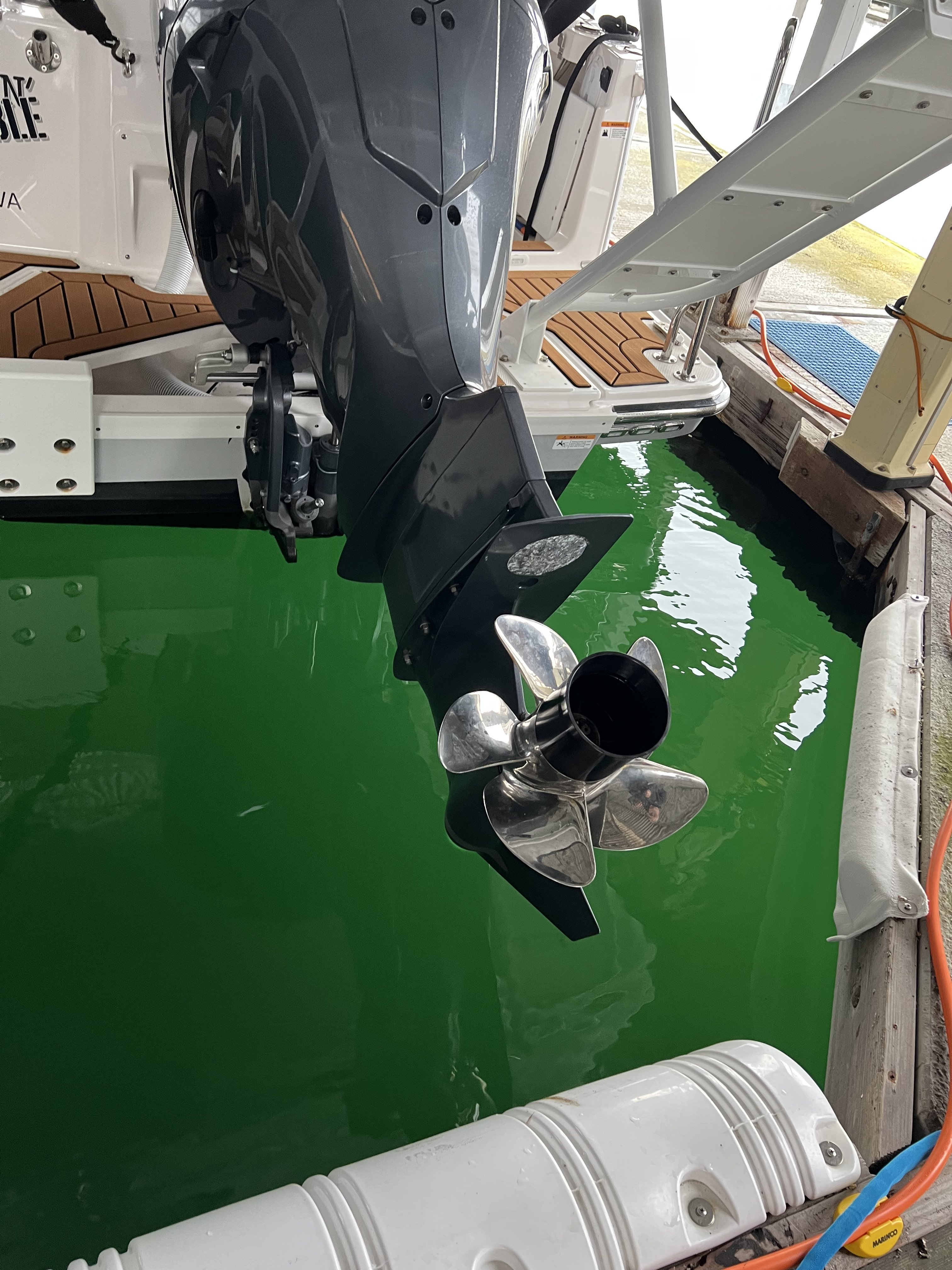 Also, I swapped out his prop by simply backing the boat into the dock as pictured.