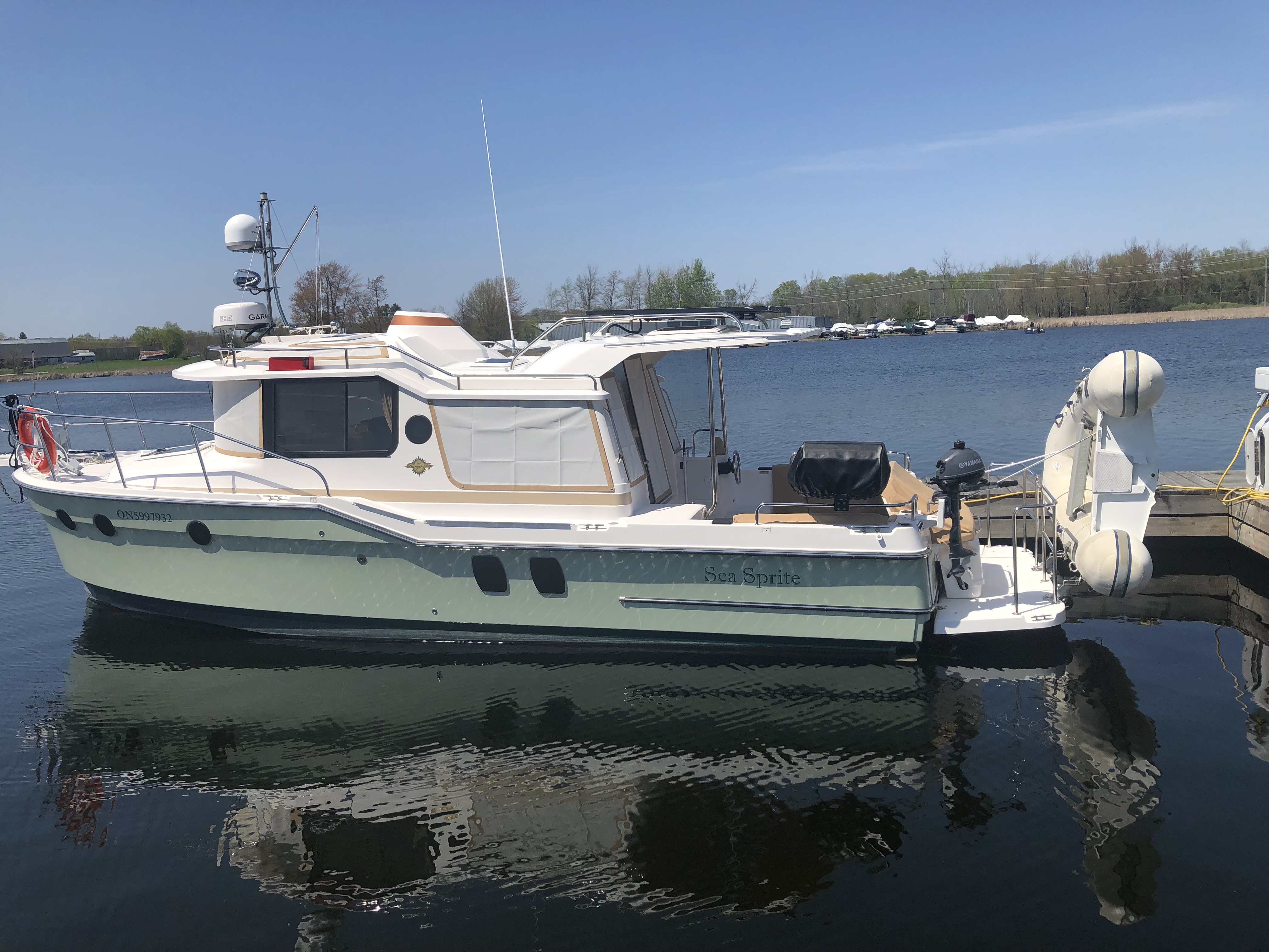 Quick question…our new to us 2018 R29S has a beautiful beige pin stripe that narrows down to the front of the boat along the side just above the walkway. Wondering if the beige is painted and the white narrow pin stripe is added, or if the whole assembly is a pin stripe. Ours is looking pretty sad and wondering if we could clean it up. Thank you very much for your help!